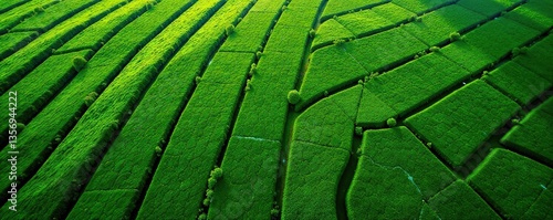 © kritsada, Fototapeta premium Aerial view of geometric tea plantation patterns at Sao Miguel, Azores, Portugal, Cha Gorreana, field