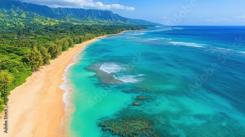 © Fightstar, Obraz premium Aerial view of golden sands and turquoise waters with tide pools