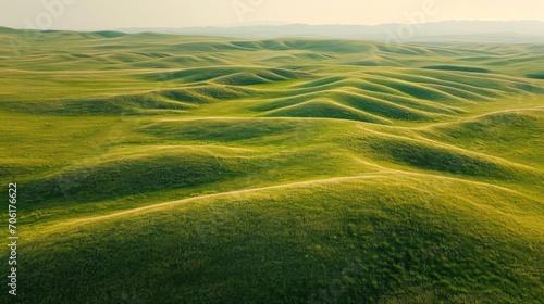 Obraz premium Aerial view of green grassy hills