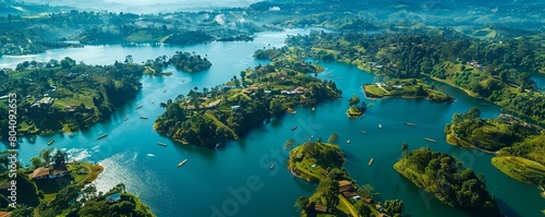 © Sanych, Fototapeta premium Aerial view of Guatapé, a complex of bay and inlets in Antioquia, Colombia.