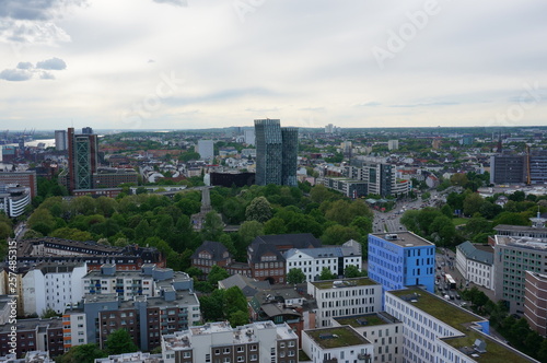 © Fizzl, Fototapeta premium Aerial view of Hamburg port on a summer day
