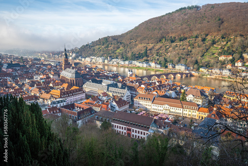 Fototapeta premium Aerial view of Heidelberg old town with Church of the Holy Spirit...
