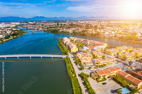 Naklejka premium Aerial view of Hoi An ancient town, UNESCO world heritage, at Quang Nam province. Vietnam. Hoi An is one of the most popular destinations in Vietnam.