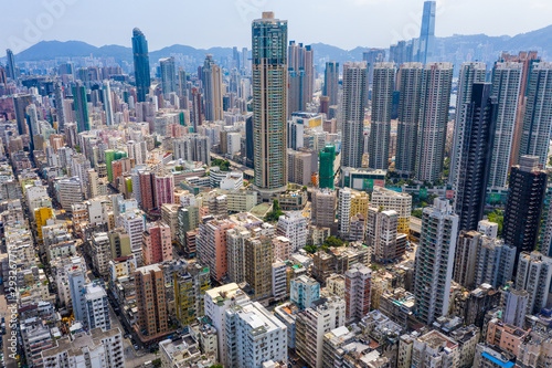 © leungchopan, Fototapeta premium Aerial view of Hong Kong city