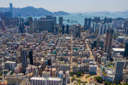 © leungchopan, Fototapeta premium Aerial view of Hong Kong city