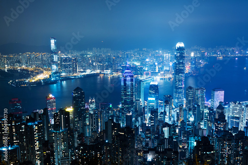 © xy, Fototapeta premium Aerial view of Hong Kong cityscape at night