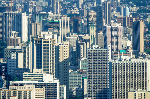 © Diegomezr, Naklejka premium Aerial View of Honolulu City in Oahu, Hawaii