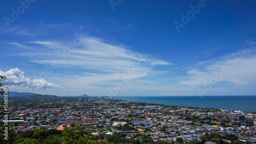 Fototapeta premium Aerial view of Hua Hin city with coastline from mountain, Thailand