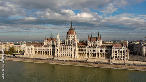 © Vgallery, Fototapeta premium Aerial view of Hungarian Parliament Building in Budapest. Hungary Capital Cityscape at daytime