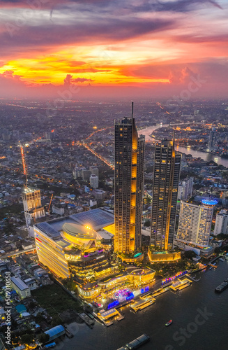 © pierrick, Obraz premium Aerial view of Icon Siam water front building in downtown Bangkok, Thailand