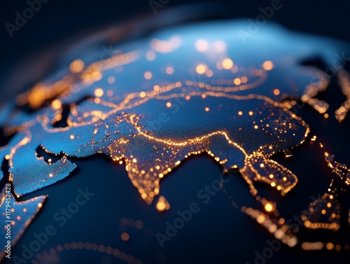 © Rattana, Fototapeta premium Aerial view of illuminated global metropolis.