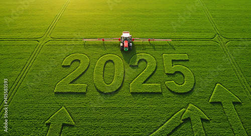© STM Lab, Obraz premium Aerial View of 2025 in Lush Green Field Agriculture and Growth