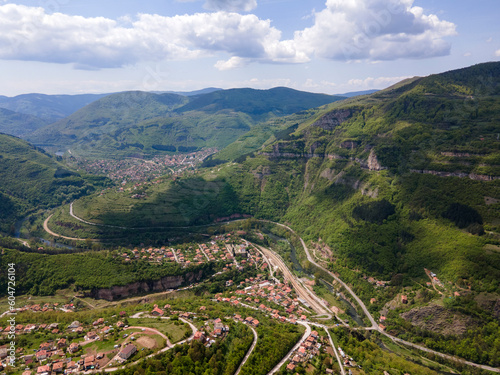 © Stoyan Haytov, Fototapeta premium Aerial view of iskar gorge near village of Bov, Bulgaria