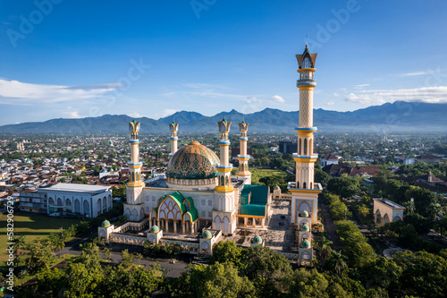 Naklejka premium Aerial view of Islamic center in Mataram city