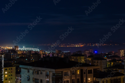 © Ipek Morel, Obraz premium Aerial view of Kadikoy district of Istanbul city at night
