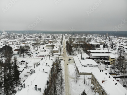 Obraz premium Aerial view of Krasnye Kursantov street in winter (Murygino, Kirov region,...