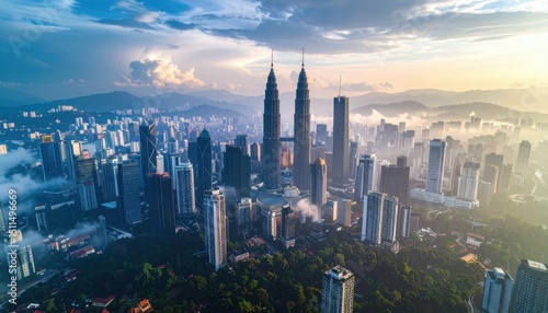 © Kitta Studio, Fototapeta premium Aerial View of Kuala Lumpur's Modern Skyline at Sunset