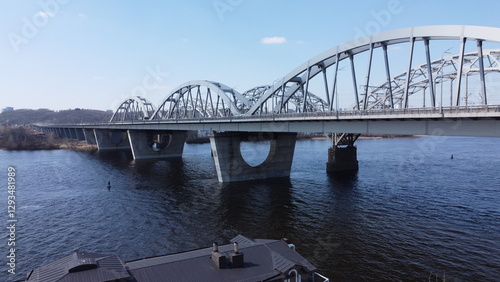 Naklejka premium Aerial View of Kyiv, Ukraine – Urban Landscape with Dnipro River and Bridges