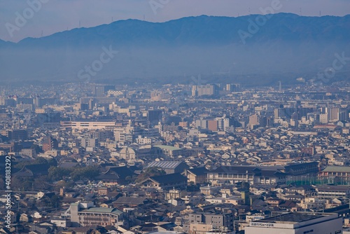 Obraz premium Aerial view of Kyoto downtown cityscape