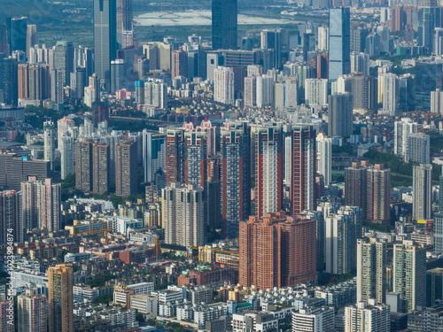 © lzf, Naklejka premium Aerial view of landscape in Shenzhen city, China