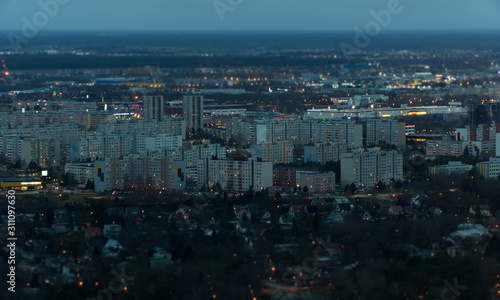 Obraz premium Aerial view of Lasnamae urban area in autumn at evening. Tallinn, Estonia.