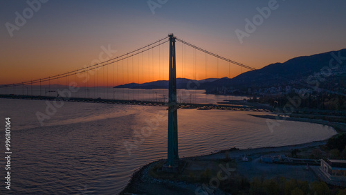 © Alexandre, Obraz premium Aerial view of Lions Gate bridge in Vancouver during Sunset
