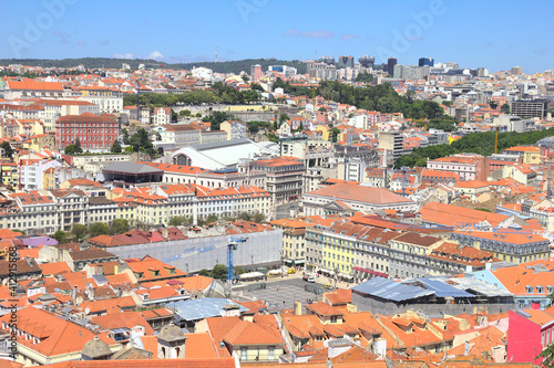 Obraz premium Aerial view of Lisbon and the Dom Pedro IV square, Portugal