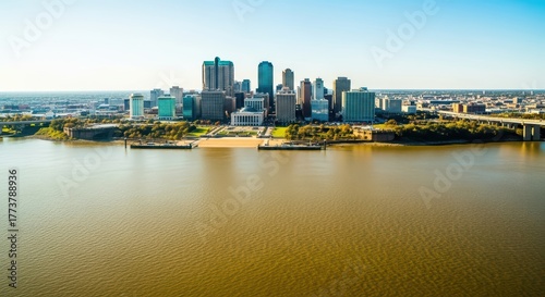 © photoplotnikov, Naklejka premium Aerial view of little rock arkansas cityscape in daylight with river