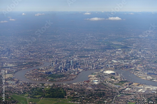 © 1000 Words, Fototapeta premium Aerial View of London with the River Thames and the British Capital's Central Business District