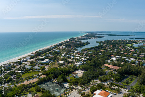Naklejka premium Aerial view of Longboat Key near Sarasota Florida, looking north along the Gulf of Mexico.