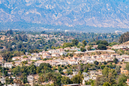 © Kit Leong, Fototapeta premium Aerial view of Los Angeles downtown cityscape