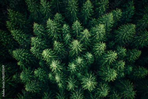© Adi, Obraz premium Aerial View of Lush Evergreen Trees in Dense Forest Canopy