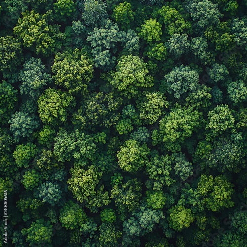 © Fatoniyah, Naklejka premium Aerial View of Lush Green Forest Canopy (3)