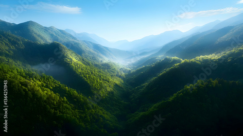© artzone, Fototapeta premium Aerial View Of Lush Green Mountain Valley