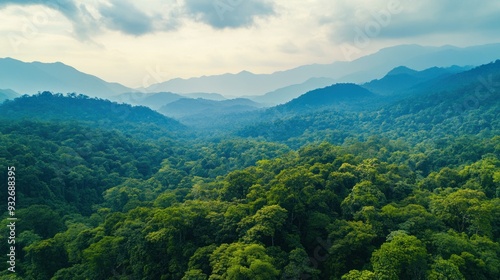 © creativeideh, Naklejka premium Aerial View of Lush Green Mountains