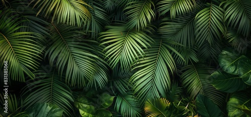 Fototapeta premium Aerial View of Lush Green Palm Fronds in Dense Tropical Jungle: Reminiscent of Landscape Photography
