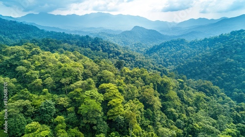 Obraz premium Aerial View of Lush Green Rainforest Mountains