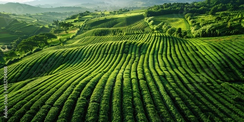 © Planetz, Fototapeta premium Aerial View of Lush Green Tea Plantation