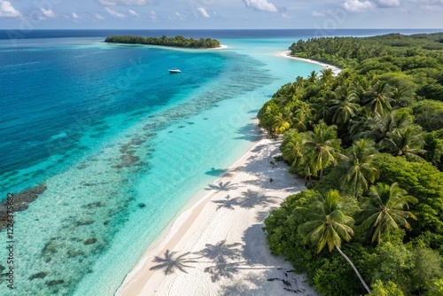 Obraz premium Aerial View of Lush Tropical Island Paradise: Turquoise Waters & White Sand...