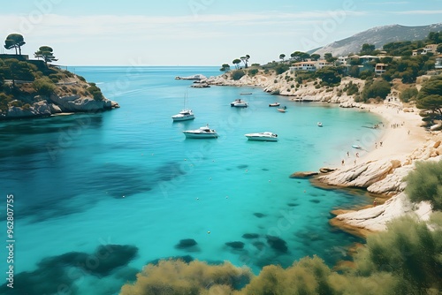 © Creative, Obraz premium Aerial view of luxury yachts and boats on a beach