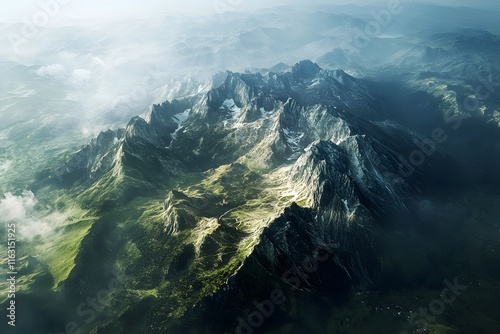 © Cartoon, Naklejka premium Aerial View of Majestic Mountains