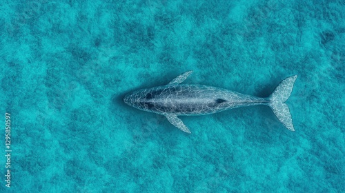 © Satisgitfied, Fototapeta premium Aerial View of Majestic Whale Swimming in Turquoise Water