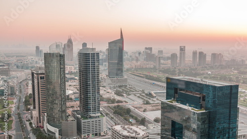 Fototapeta premium Aerial view of media city and al barsha heights district area night to day...