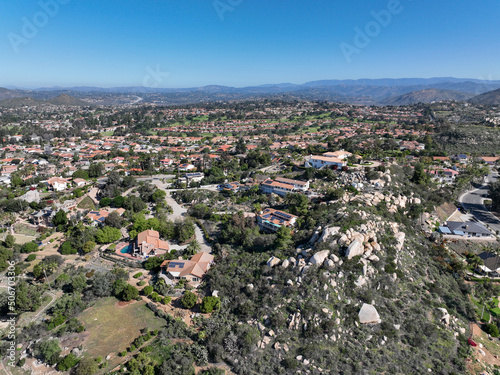© Unwind, Fototapeta premium Aerial view of middle class neighborhood with villas in South California, USA