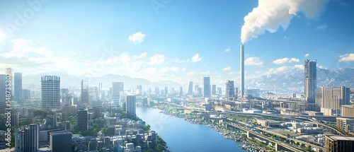 Obraz premium Aerial View Of Modern Cityscape With River And Industrial Zone