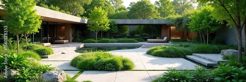 Obraz premium Aerial View of Modern Landscape Design Geometric Shapes, Lush Greenery, and...