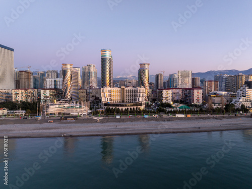 © Microscope, Obraz premium Aerial view of modern luxury hotel Colosseum Marina on Sherif Khimshiashvili street. Batumi, Georgia