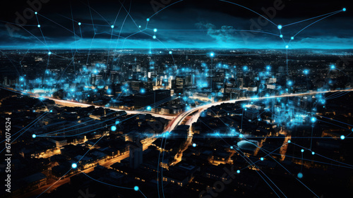 Fototapeta premium Aerial View of Modern Urban Connectivity at Night