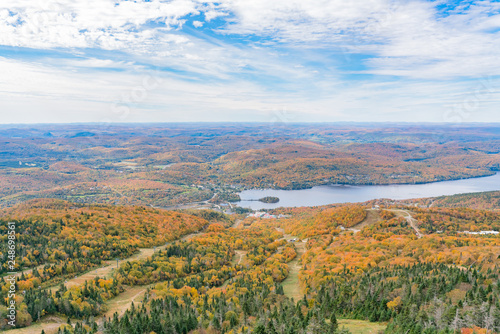 © Kit Leong, Fototapeta premium Aerial view of Mont-Tremblant National Park with Lake Tremblant in fall color