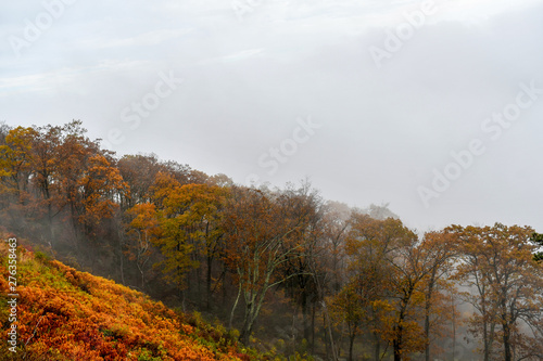 © 3000ad, Fototapeta premium Aerial view of mountain forests in bright autumn colors